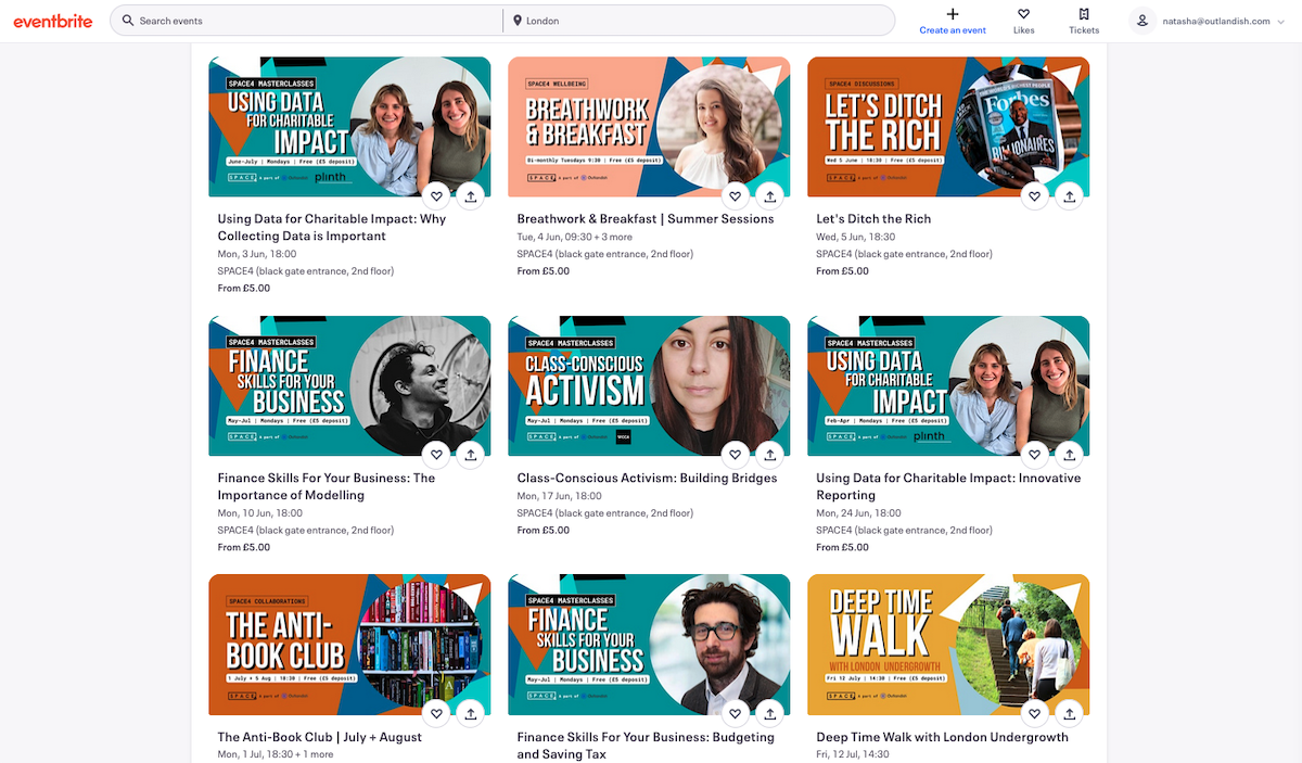 Every Wednesday we organise a £7 lunch. Register through Eventbrite before 11:30am on the day.